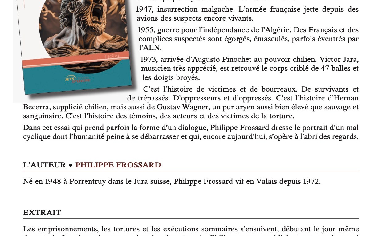 Ma conscience de l’oppression de dominants, de situations de répression et de la souffrance de victimes a été nourrie d’exemples concrets depuis mon enfance. Le constat m’interpelle de longue date, sans m’apporter de réponse, que des génocides, des répressions populaires, des massacres ou la pratique de la torture se déploient partout dans le monde… mais nous les méconnaissons la plupart du temps. D’où mon livre « Là où hurlent les suppliciés », aux éditions Jets d’Encre